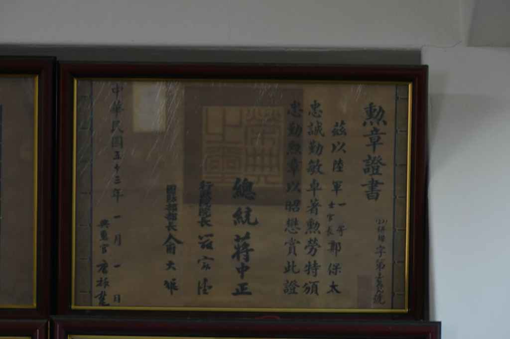 來自蔡英文總統與蘇貞昌院長的表揚,也懸掛在老爺子家牆壁上。